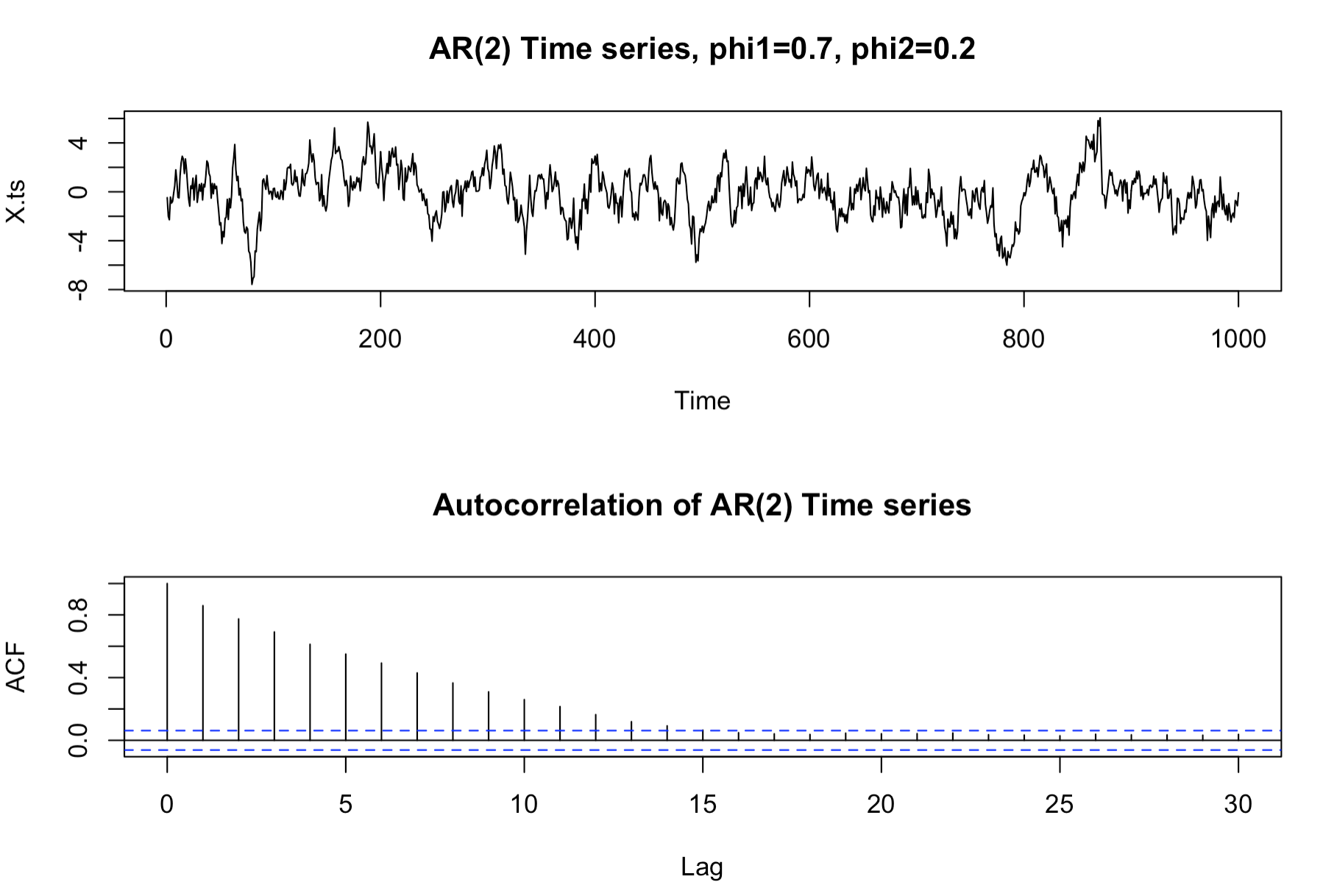 X.ts <- arima.sim(list(ar=c(0.7,0.2)), n=1000)