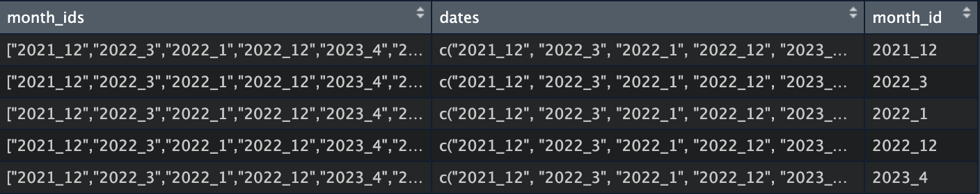 mutate(month_id = map(dates, str_split, pattern = ",")) %>%