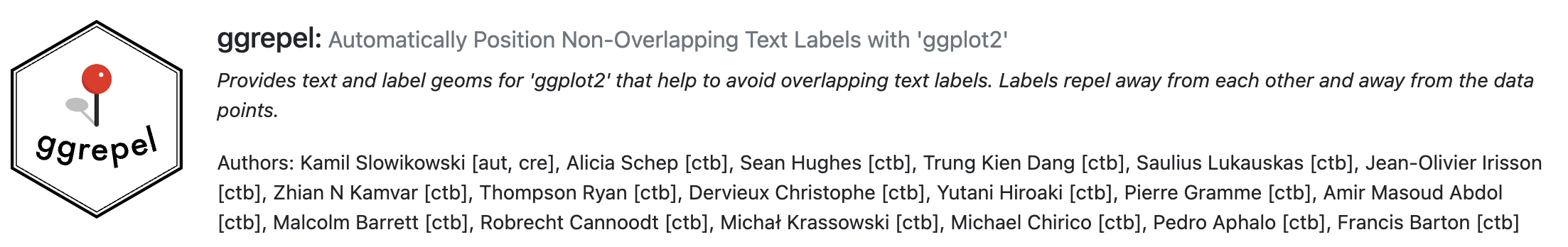 혹시나 레이블의 위치를 자동으로 바꿔주는 패키지가 있나 살펴보다가 ggrepel 이라는 패키지가 있다는 것을 알았다. 사용법은 매우 쉽다. 만드려고한 ggplot 에다가 + geom_text_repel() 만 해주면 된다.