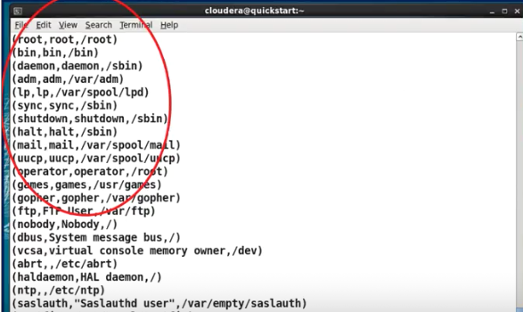 결과는 /user/cloudera/passwd 에 저장된 정보의 일부를 위 그림처럼 출력하게된다. 결과를 파일형태로 저장하기 위해서는 아래와 같은 명령어를 수행할 수 있다.