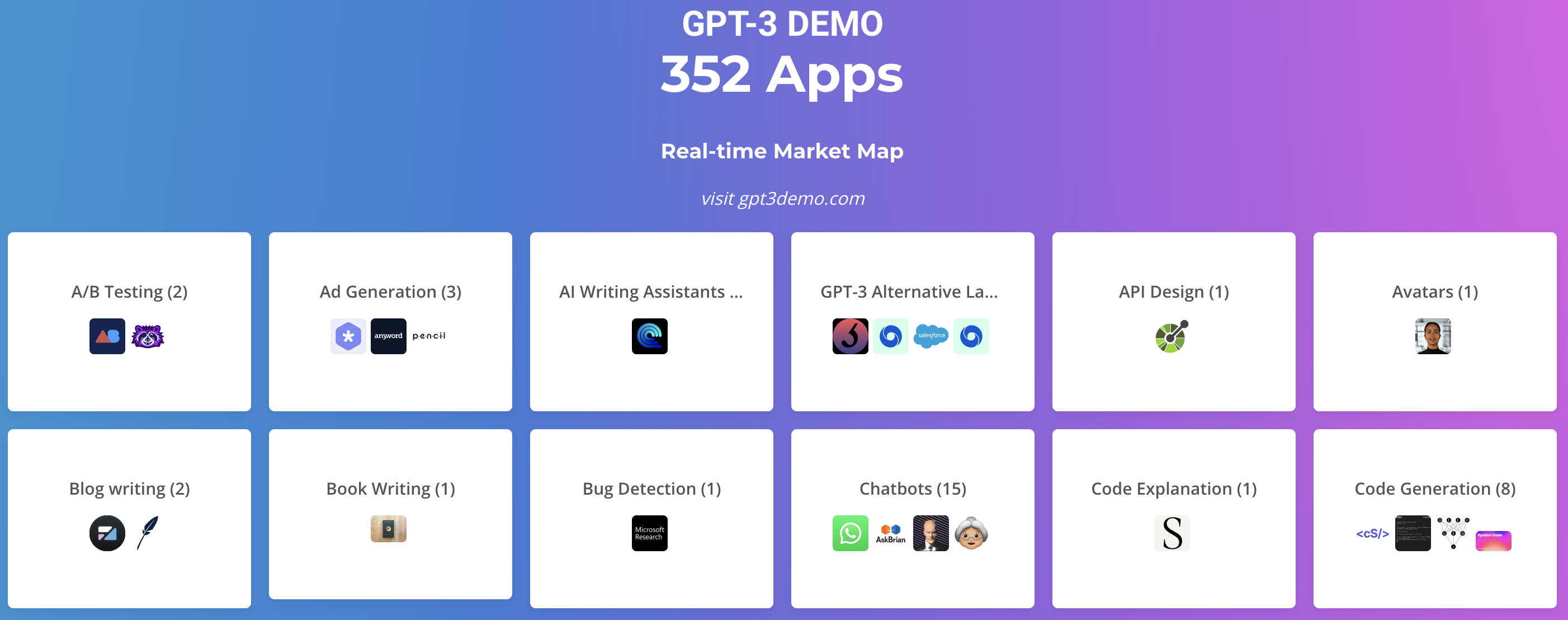 GPT-3 데모사이트 에는 다양한 분야의 GPT-3 open API 를 활용한 다양한 어플리케이션들의 리스트를 확인할 수 있다.