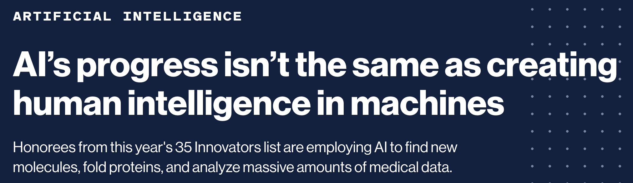 제목에서 알 수 있듯 위 아티클은 AI 의 발전은 기계로 인간 지능을 창조하는 것과 동일하지 않다. 고 말하고 있다.