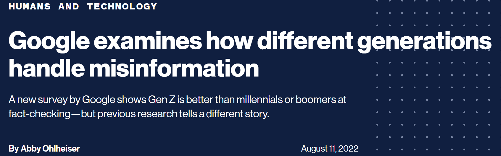 2022년 8월 11일, 구글 검색 엔진팀은 다양한 연령대 및 국가별로 잘못된 정보를 처리하는 방법의 차이점에 대한 연구를 발표하였다. 이 연구에서는 8,000명 이상의 연구 대상자에게, 온라인 콘텐츠 조사 방법에 대한 설문 조사를 실시하였으며, Z 세대와 (18-25세) 부터 Silent Generation (>68세) 에 이르는 연령대별로, 7개 이상의 국가별로 수집한 설문 결과를 종합하였다.