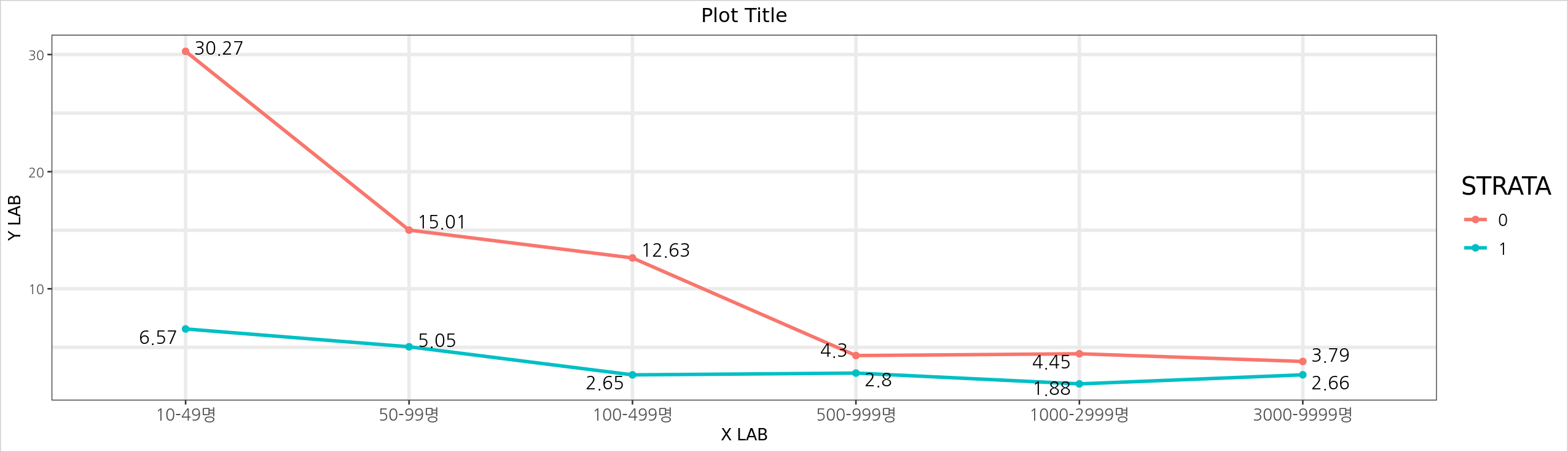 R 에서 ggplot 을 통해 그래프를 그릴 때 불편했던 점이 텍스트 레이블을 차트에 표시하기 어려웠던 점이다. 엑셀로 그래프를 그리는 경우 레이블 옵션을 설정한 뒤 이를 마우스 드래그를 통해서 조정할 수 있으나, ggplot 에서는 hjust, vjust 를 통해 한땀한땀 레이블을 조정하곤했다.